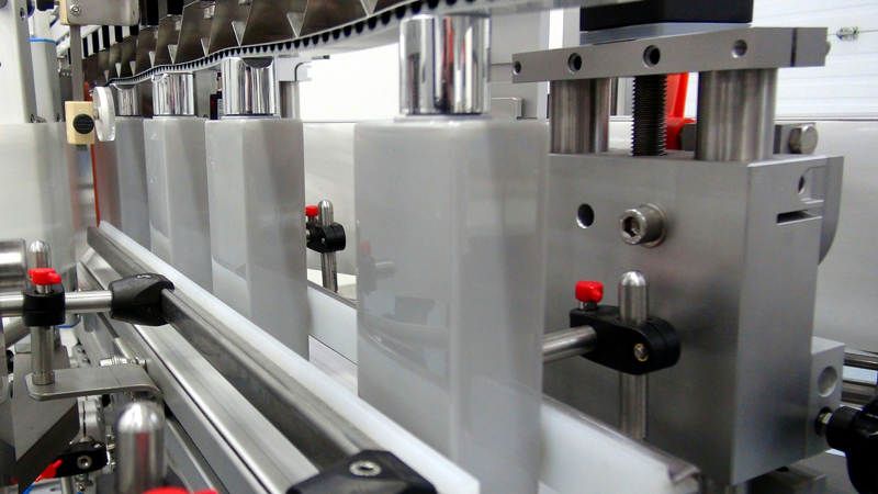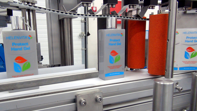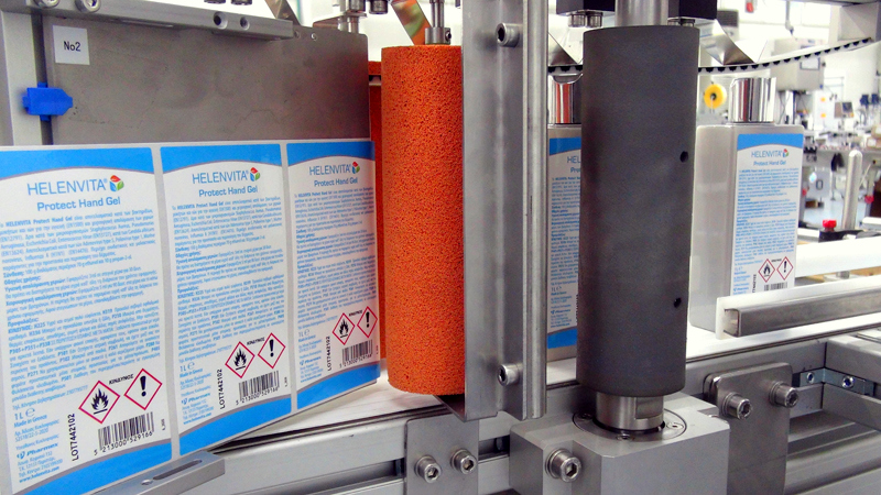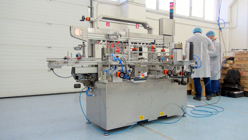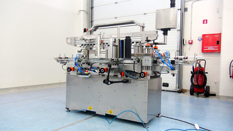 The project was quite challenging in that, on one hand there was a need for automatic lateral labelling on up to two antisymmetric sides of oval and parallel containers and on the other hand for wrap-around labellling in cylindrical and conical bottles at a rate of up to 45 pieces / min. All with one machine able to handle different containers and in a wide range of sizes (from a few ml up to 2lt). Moreover, online printing of dynamic information (lot number, expiration date) on the label during labelling was also a requirement.